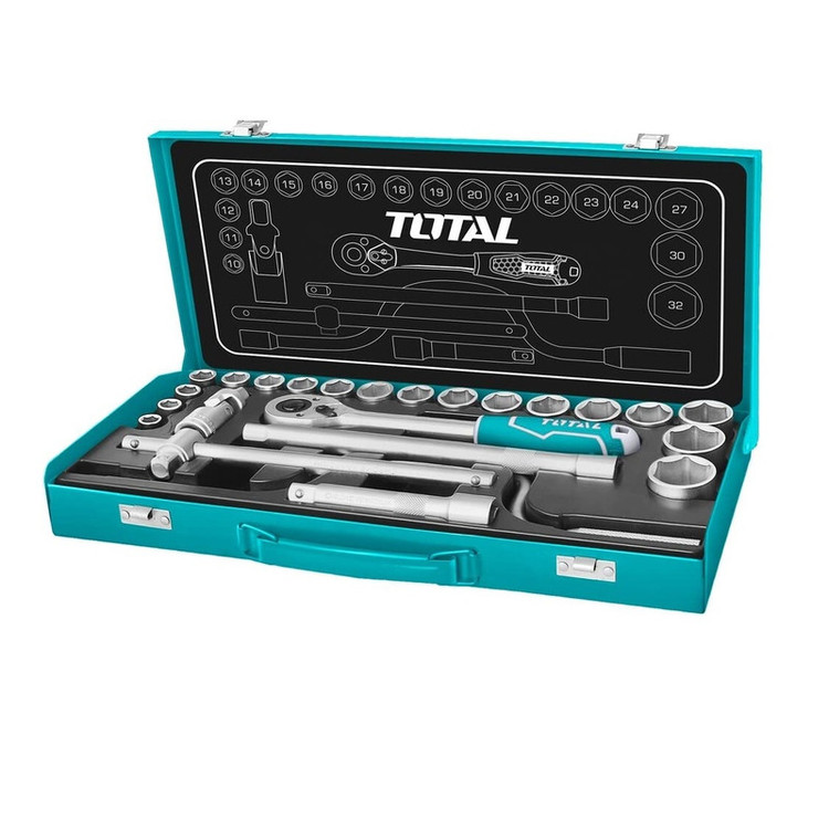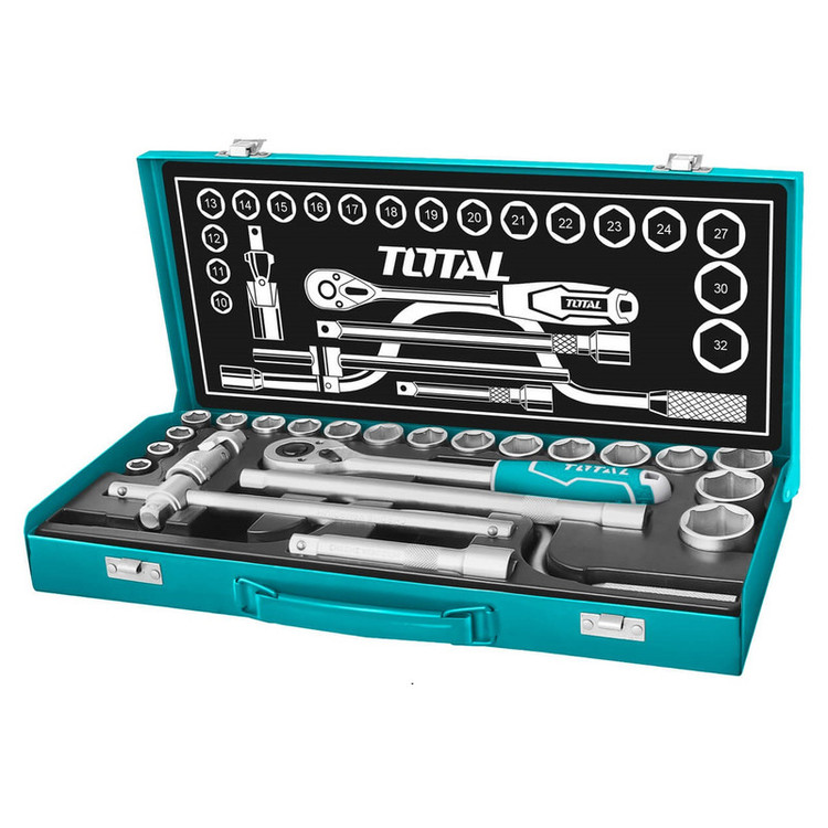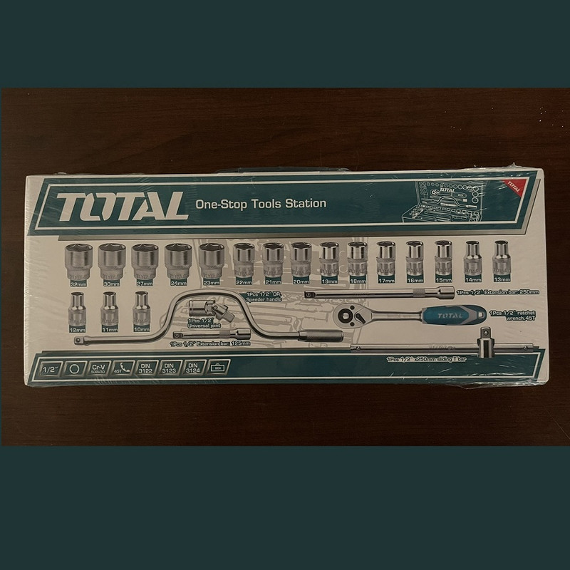 شامل 18سری بکس 1/2 در سایز های 10-11-12-13-14-15-16-17-18-19-20-21-22-23-24-27-30-32 میلیمتر دو عدد رابط افزایش دهنده طول 125 و 250 میلیمتری دسته جغجغه ای دسته T شکل