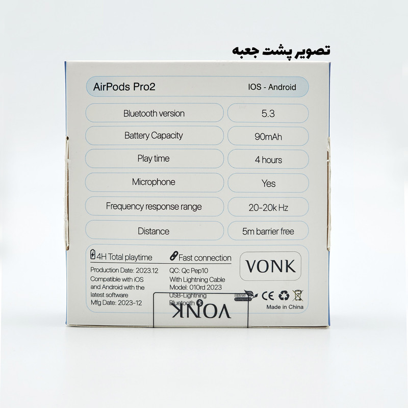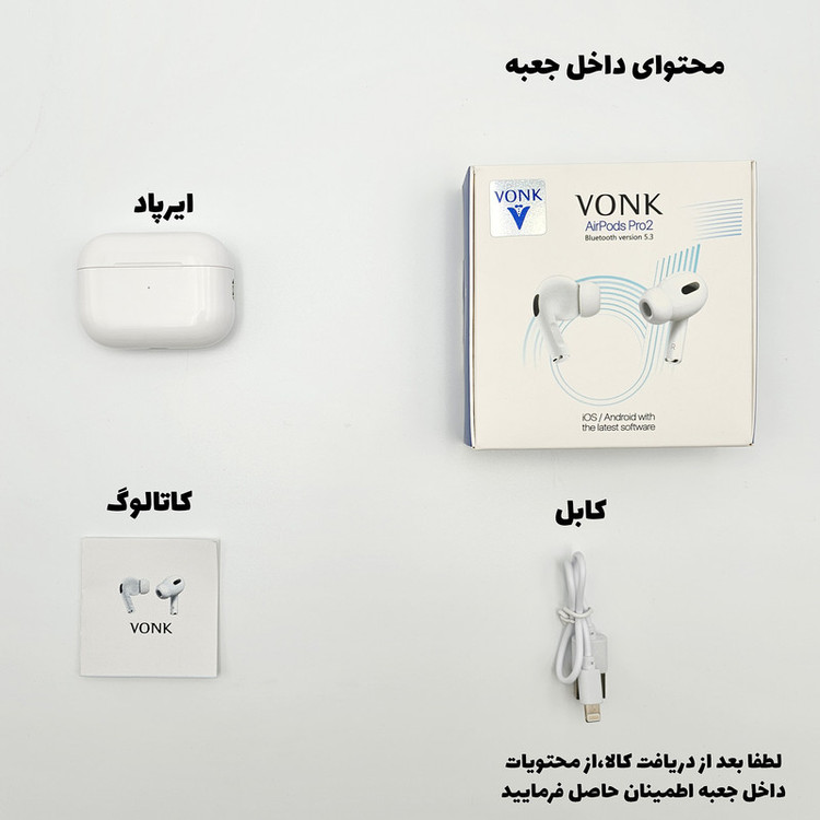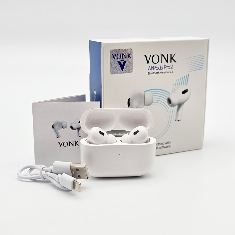 VONK AirPods Pro 2nd، هدفون بلوتوث با طراحی زیبا و کمیتی به اندازهی مناسب برای جاگیری در گوش است. ساختار فیزیکی آن به دقت طراحی شده تا هنگام فعالیتهای ورزشی یا حرکت، بهخوبی در گوش ثابت بماند. بدنهی هدفون از مواد پلاستیکی نرم و مقاوم ساخته شده است که علاوه بر اینکه از خطوط زیبا و شیکی برخوردار است، نیز در برابر خطوط خش و اثر انگشت مقاوم میباشد. علاوه بر این، VONK AirPods Pro 2nd امکانات فراوانی دارد که شامل گوش دادن به موسیقی با کیفیت، تجربهٔ بهتری در تماشای فیلم، و مکالمات تلفنی با صدای قابل قبول میشود.