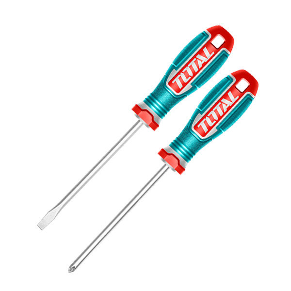 ست دو عددی پیچ گوشتی دوسو چهارسو برند توتال، ساخته شده از آلیاژ S226 فولاد حرارت دیده مقاوم، دارای نوک آهنربایی و دسته فایبرگلاس ضد لغزش سبک، محکم و خوشدست