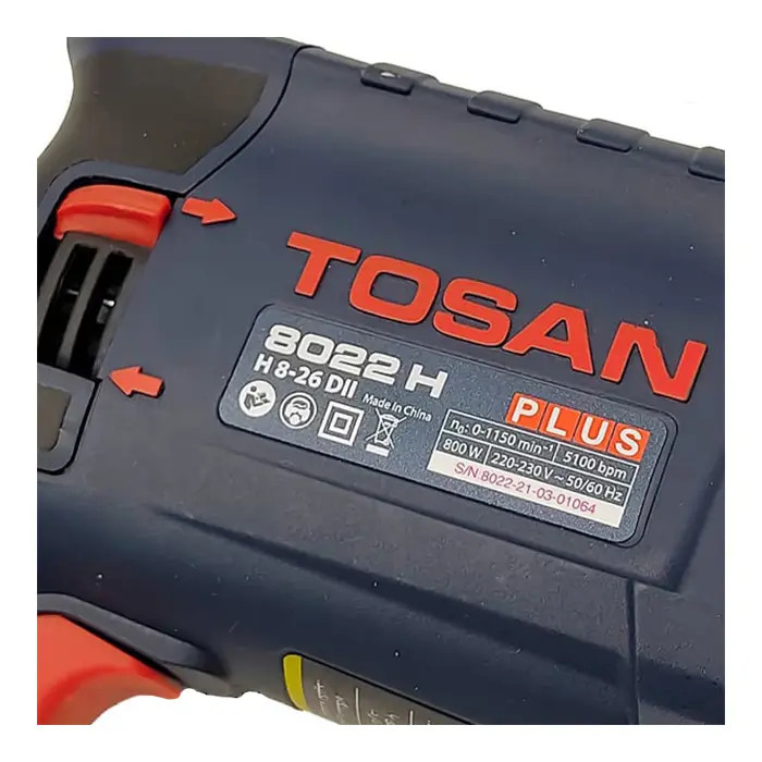 دریل بتن کن توسن مدل 8022H PLUS یک دستگاه سه کاره با قابلیت دریل ساده، دریل چکشی و چک تخریب است که از یک موتور 800 وات با توانایی تولید 5100 ضربه در دقیقه و سرعت 1150 دور در دقیقه استفاده میکند.