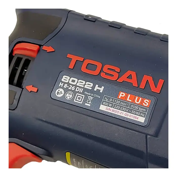 دریل بتن کن توسن مدل 8022H PLUS یک دستگاه سه کاره با قابلیت دریل ساده، دریل چکشی و چک تخریب است که از یک موتور 800 وات با توانایی تولید 5100 ضربه در دقیقه و سرعت 1150 دور در دقیقه استفاده میکند.