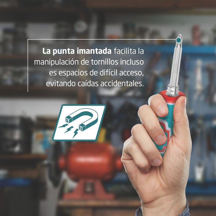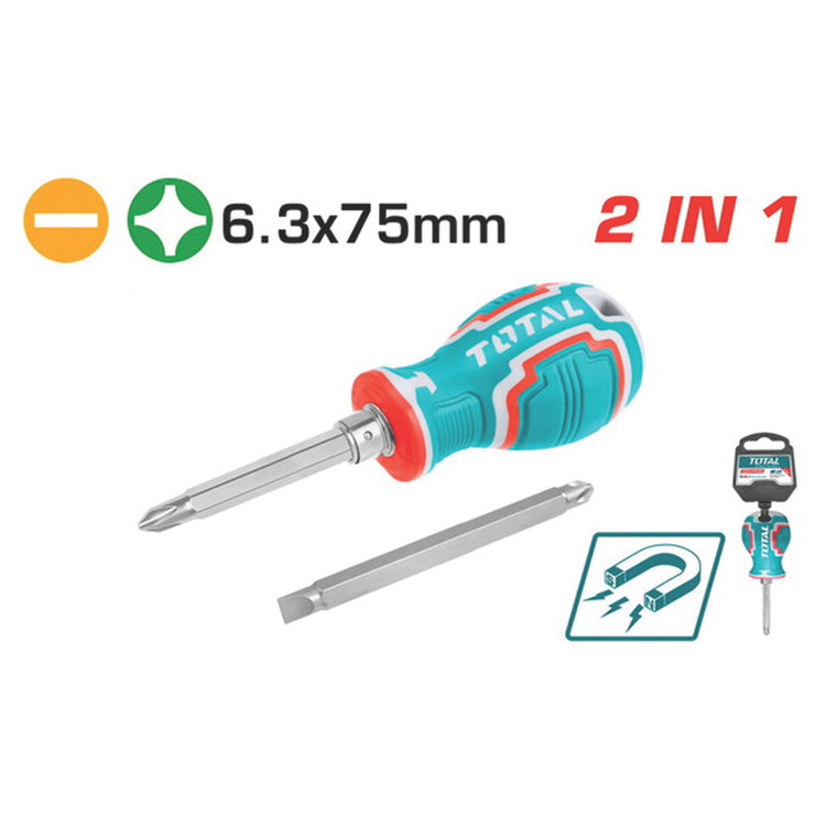 دارای قابلیت آهنربایی دسته ضد لغزش و ضد تعریق ساخته شده از فولاد کروم وانادیوم دسته ساخته شده از پلاستیک TPR یکسر دوسو یکسر چهارسو طول کلی پیچ گوشتی 11 سانتی متر طول میله پیچ گوشتی 7.5 سانتی متر دارای استاندارد CE اروپا ساخت چین تحت لیسانس