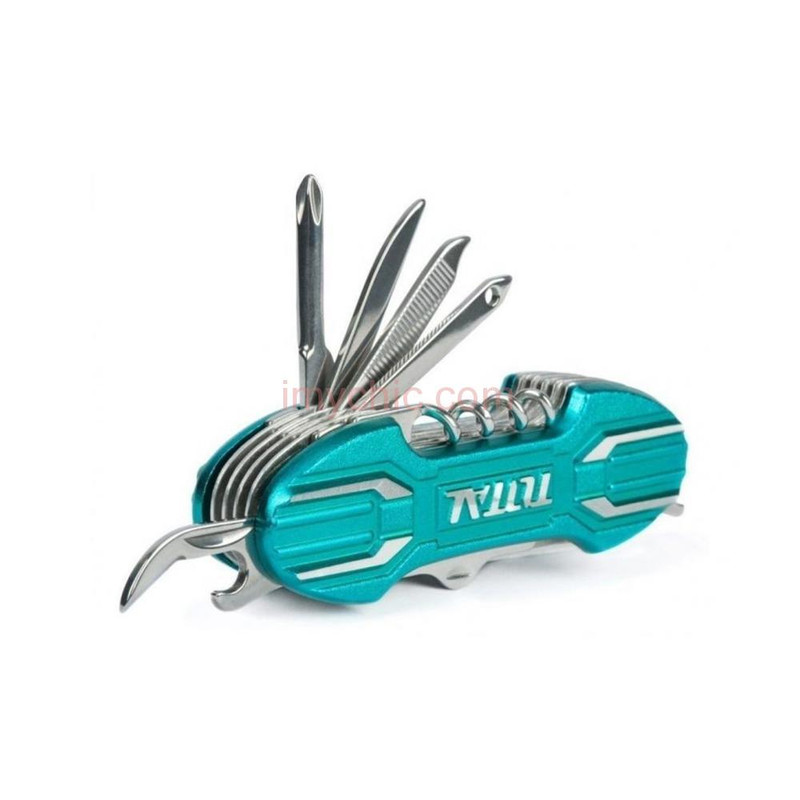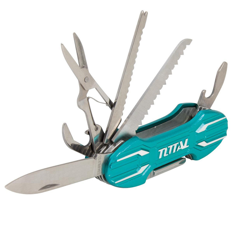 این وسیله دارای دسته آلومینیومی و سری های فولادی می باشد و شامل 15 کاربری :چاقوی بزرگ، قوطی کنسرو باز کن، پیچ گوشتی چهارسو، پیچ گوشتی دوسو، پانچ کن چرم، بطری باز کن، قیچی، سوزن، قلاب، اره، چوب پنبه باز کن، پاک کننده ناخن، سوهان ناخن و ... می باشد
